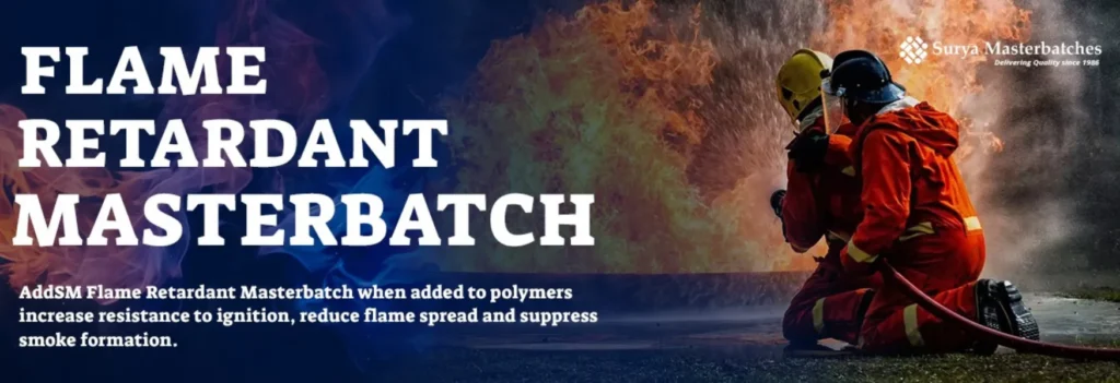Flame Retardant Masterbatch by Surya Masterbatches ensures superior fire resistance for plastics. Reliable, high-quality solutions for enhanced safety Most thermoplastics are flammable, burning easily when heated to a high enough temperature. Flame retardants are added to polymers to increase resistance to ignition, reduce flame spread and suppress smoke formation. (we also provides various others customized Masterbatches such as Fluorescent Masterbatch, Special Effect Masterbatch, TPU Masterbatch, Uv Masterbatch, Pearl Masterbatch etc)